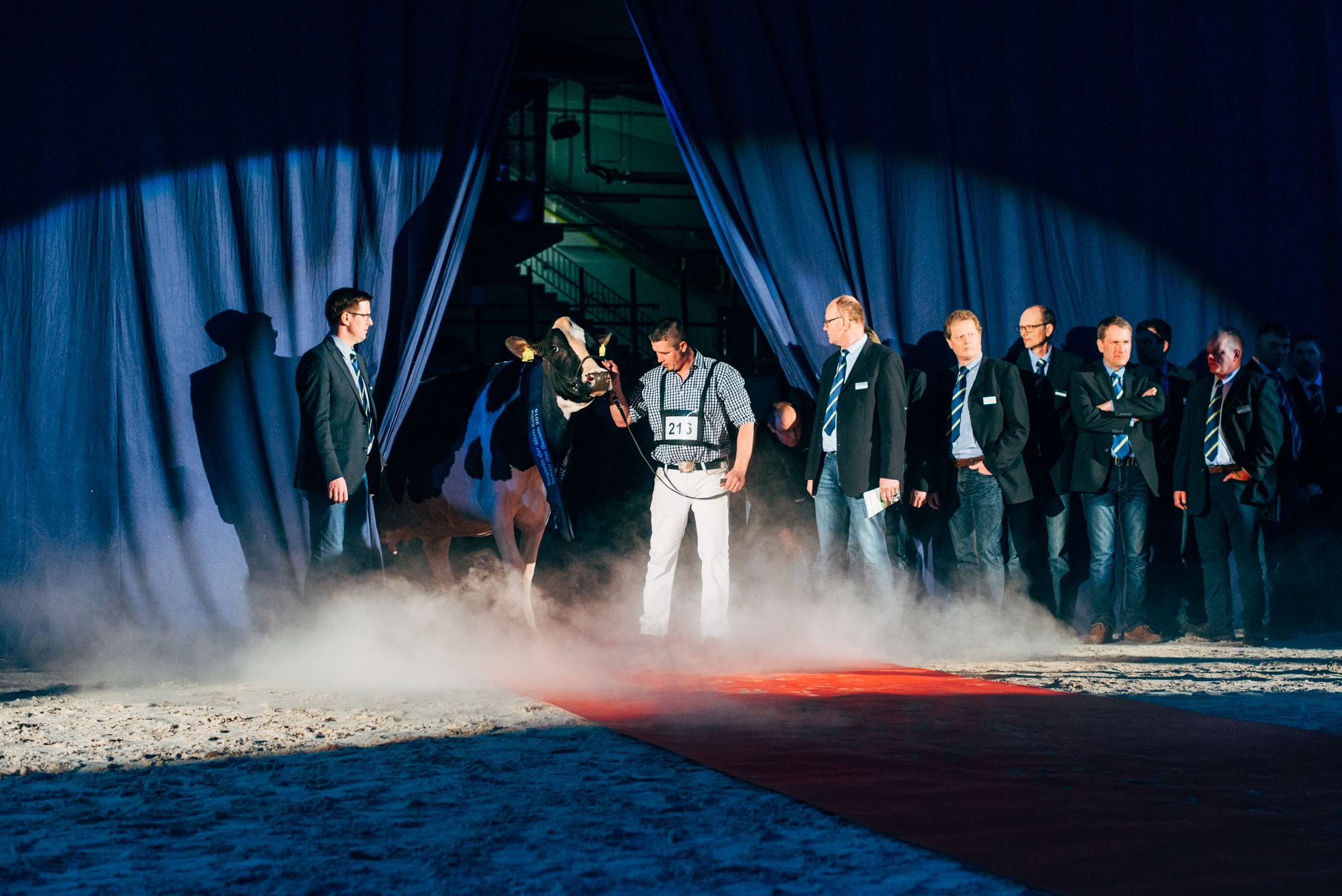 Prämierte Hochleistungskuh „Lady Gaga“ auf der 43. Schau der Besten im niedersächsischen Verden. Foto aus der Serie „Die Milch-Matrix“ von Nikita Teryoshin, zu sehen bis 14. Januar 2026 in der Ausstellung „Point of Kuh“ an der Universität Hohenheim und in der Württembergischen Landesbibliothek Stuttgart. | Bildquelle: Nikita Teryoshin